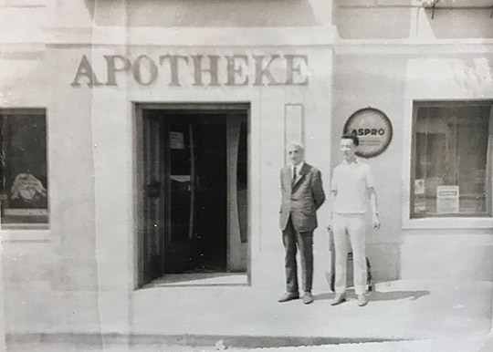„Der Standort der Apotheke ist das Haus No. 139; sie ist gut gelegen; Schild lautet „Zum Salvator“; kein Provisor und kein Praktikant im Betrieb. Der Gehilfe heißt Georg Fellmer, er ist 23 Jahre alt, gebürtig aus Kronstadt, wo er 8 Schulen absolvierte. Das Tirocinium brachte er in der Wallachei, in Georgevits bei dem Apotheker Frid. Klein im Jahre 1854 hinter sich. Er konditionierte alldort und zwei Jahre in Bukarest und ist dermalen seit 7 Monaten in Mattersdorf. Der Zustand der Offizin, Geräthe und Vorräte ist in Ordnung, die untersuchten Präparate sind probehaltig. Die Heroischen Mittel sind versperrt, Gifte werden nicht dispensiert. Reagenzpräparat, Expeditionstisch, Materialkammer und Labor sind in Ordnung. Der Wasserkeller ist reichlich versehen, ebenso der Kräuterboden. Pharmacopoe, Medikamententaxe, Berufsbücher, Defectenbuch, Rechnungen und Ausweise vom Materialisten, Gebr. Fritz in Wien, über bezogene Materialien vorgefunden. Das Contobuch wird geführt. Die in der Apotheke zurückgehaltenen Rezepte sind in guter Ordnung.“